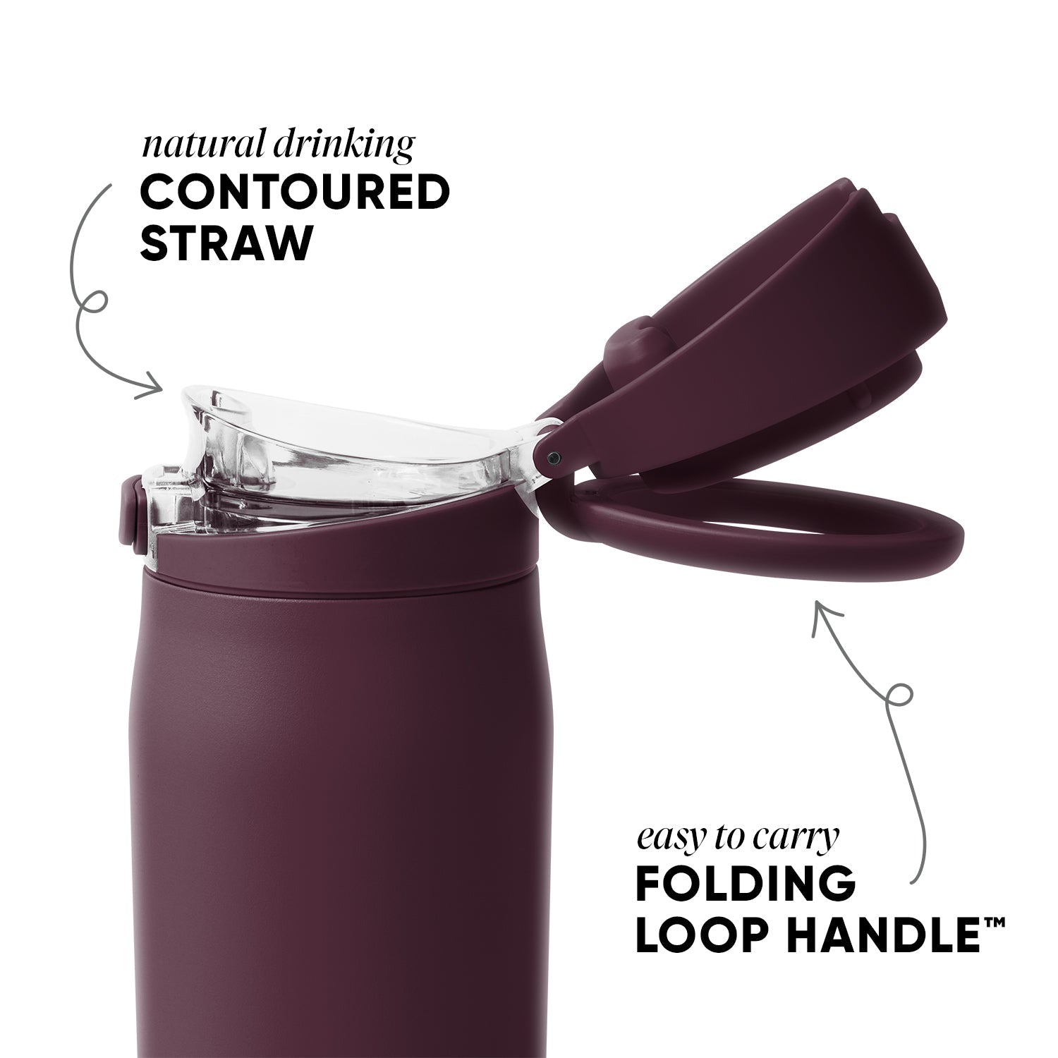 Airflow Relief Valve: Large opening enhances straw drinking experience.